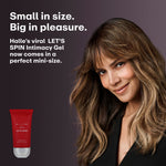 Created by an Ob-Gyn with Halle Berry, founder of Respin, this silky-smooth, FDA-cleared intimacy gel relieves vaginal dryness and pain with sex—especially during perimenopause and menopause. Infused with hyaluronic acid and aloe, experience the ultimate in hydration, comfort and relief with this all-clean, pH-balanced gel. Mini in size, but big in pleasure, Let’s Spin is your go-to for travel-friendly, safe, effective, intimacy for anyone, anywhere.